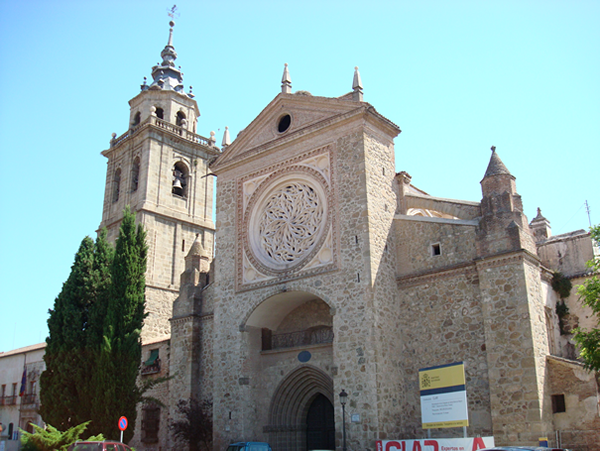 Fachada occidental de la Colegiata de Talavera. La iglesia parroquial de Santa María la Mayor fue elevada a la categoría de colegiata en 1211 por el Arzobispo Jiménez de Rada. Sin embargo la mayor parte del edifico actual es del siglo XV, dentro de lo que podríamos llamar gótico mudéjar.